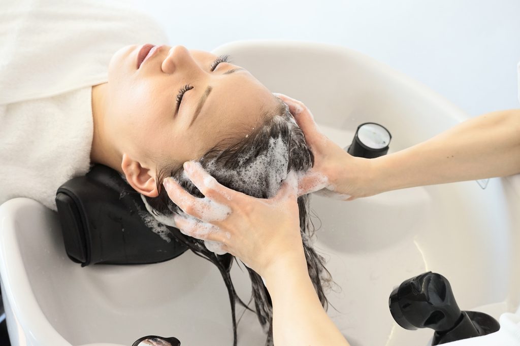 肌質に合わせたシャンプーを選定。ホホバオイルと100%のエッセンシャルオイルを使用したヘッドキュアマッサージで頭皮環境を整えます