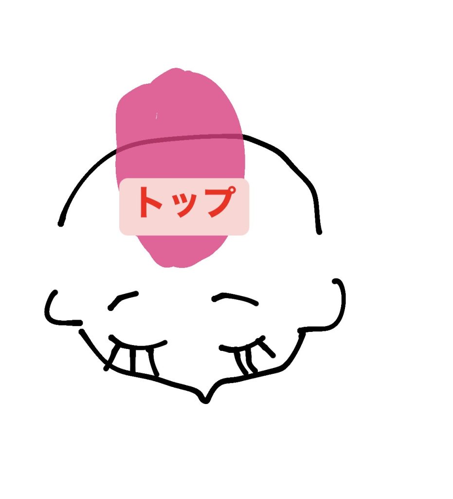 今回は大きくトップ(頭頂部)、フロント(前頭部)、サイド(側頭部)、ネープ(首、後頭部)の4つに分けて説明させて頂きます!!😀