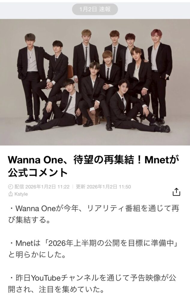 年明け早々2026年1月に、Mnetが「2026 COMING SOON / また会おう」というWanna Oneの復活プロジェクトを予告したんです!!