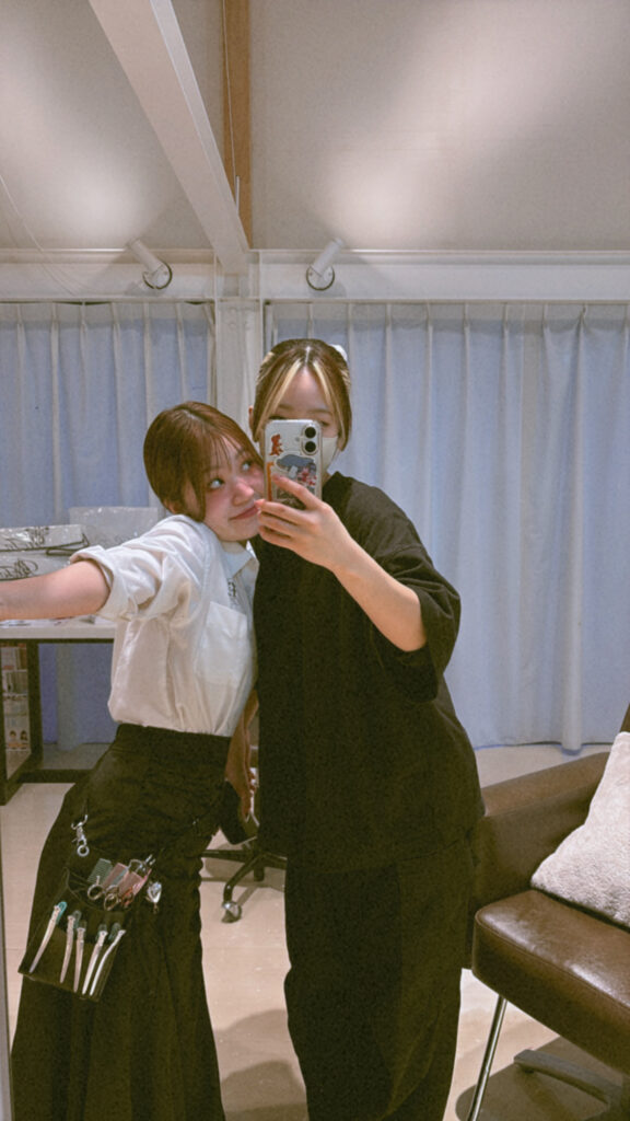 早起きが苦手なので遅刻しないようにハラハラの毎日でしたが、大好きなまりな先輩にセットやメイクのノウハウを叩き込んで頂きました!!